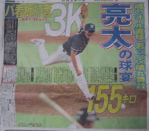 松井稼・小笠原・中村に最速155キロの自慢のストレートで三振ショー。
