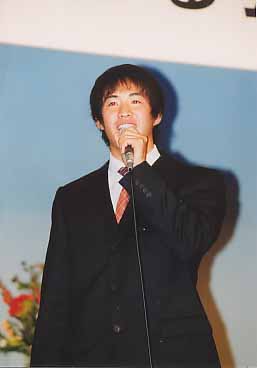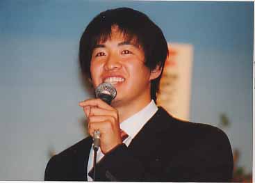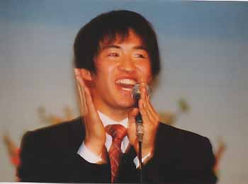 | 【後援会パーティーについて】 パーティー参加の皆さんには12月に野球教室でお会いしていたので、まずはご両親に挨拶して亮太会からの『亮太母へのお礼メッセージ』を渡して、次は亮太と少し話をしてから取り急いでボールや色紙にサインを書いていただいた後に、奥様の織江さんに婚約を記念としてビーニーベイビーズというクマのぬいぐるみ(ミスター&ミセスという白の花婿花嫁衣裳)にカードを付けてプレゼントさせて頂きました。その後はゲームの最中も写真撮影に忙しくありすさんも眼中に無く、周りが全く見えていないほどになっていました。パーティー後半では亮太母に無理を言って『亮太母に聞いちゃいました』への質問に答えていただけるようお願いしました。その後撮影会が始まった時、ありすさんと『食事しない』の言葉で食事をとる事にするが、あまりにも時間的に遅かったので料理のほうもあまり残っていなかったのが現状です。パーティーも杉浦さん・亮太の挨拶で終了となり参加者には2001優勝記念キャップなどが配られ、出口ではそのキャップに亮太のサインを貰う人達が並んでいました。その後管理人は亮太やご両親・野球関係者など、皆さんと記念撮影をした後帰路につきました。本当に楽しい時間でした。また参加する機会があれば是非参加したいと思いました。 マックス亮太 |