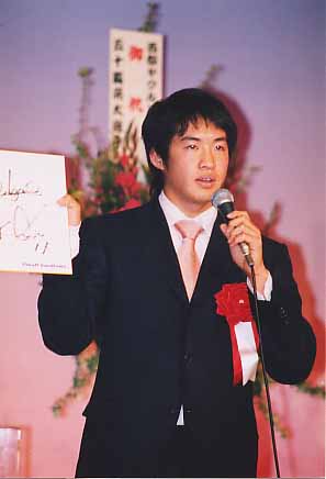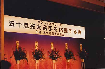 | 今回のパーティーは管理人として、パーティーの様子をホームページにアップして、パーティーに参加した様に皆さんに感じていただけ事を目標にやってきましたので、これでひとまず大役を終えた事にホットしております。 今回のパーティーでは昨年と比べると、フリータイムの時間がかなり多くなっていましたので、インタビューや本人との話など色んな事が出来、パーティー内容もテープレコーダーにとった事が記事の書きやすさにつながったと思います。 五十嵐亮太投手並びに五十嵐様ご家族の皆さん。本当にありがとうございました。 ご協力下さった方、お手伝いしてくれた方。