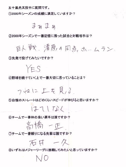 五十嵐投手、アンケートにご協力有り難う御座いました。