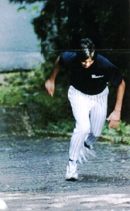 《その4》 石井弘寿選手がとっても明るいぞ!! 階段登りの日・・・地元のおばちゃんと仲良く語っていた! と言うより・・・おばちゃんに説教をされていた その上、・・・橿渕選手とお相撲さんの真似までしていた。何か?いつもとちがう?明るくなる様な事があるのかなぁ〜? |