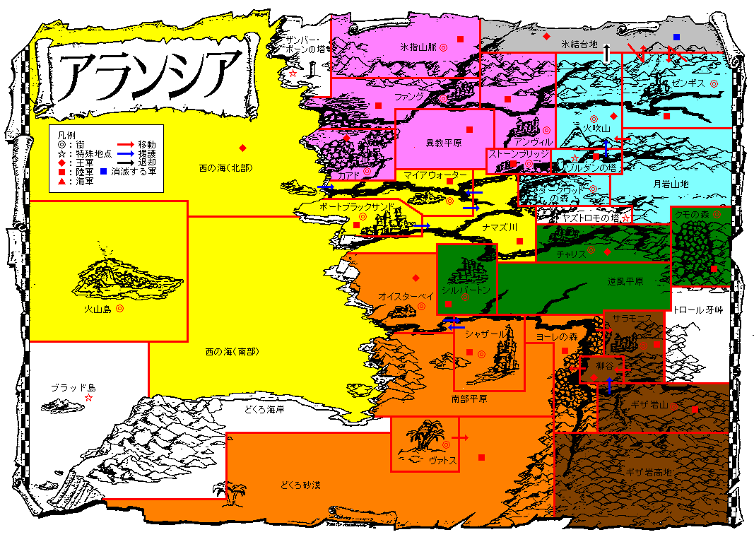 陸軍 ゾルダンの塔 援護 王軍 月岩山地 移動 火吹山(退却希望先 ダークウッドの森)