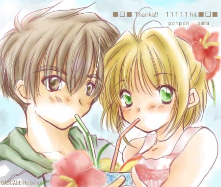*** 大変…たい―――――へん、お待たせしました……(滝汗… 11111hitを踏んで下さった、ぽんぽん様へのキリリクイラストです。 頂いたリクエストは『ジュースを飲む二人』です。 気分的にトロピカルvvを目指しました! ………玉砕………。 ぽんぽん様。キリ番踏み踏み、ありがとうございましたvv ※ぽんぽん様のみ、お持ち帰り可でございますvv※ *** (2004.10.06UP) |