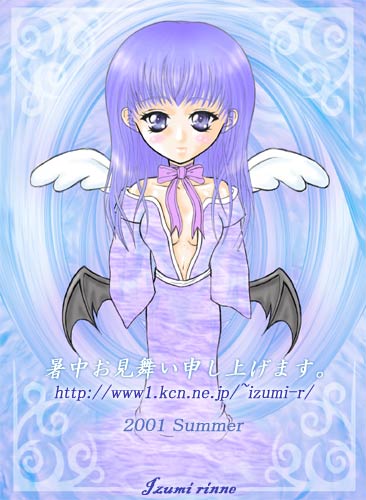いずみさんより暑中見舞いをいただきました♪ ディフォルメキャラ、なぜワシの好みを知っているんですか〜(><) リボンも付いてます(笑) 淡い色合いがとっても涼しげなのです(*^^*) (*^^*)ありがとうございました(*^^*)