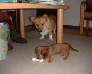 ハイジの向かって右側に居るのが、横浜から来た3ヶ月の女の子の「ミミ」ちゃん。