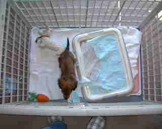 夜はゲージで大人しく寝てくれ、トイレの失敗もありませんでした。