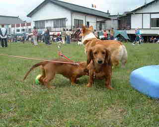 5月19日に朝霧高原にある「もちや」で開かれたミニチュアダックス運動会に参加しました。