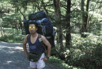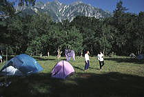 高校山岳部以来続けている登山。 ここでは、お勧めコースの北アルプスの徳沢をベースキャンプにした蝶ヶ岳と屏風の頭アタックを紹介します。 1日目は上高地から徳沢まで約2時間の歩程です。 |