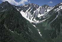 | 屏風の頭から望む穂高連峰 | 槍ヶ岳方面 | この雪渓通過がけっこう怖い |