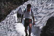 | 3日目 ・・・ 屏風の頭へ 穂高は人が多くてちょっとという人におすすめなのが徳沢〜涸沢間のパノラマコース。 但し早い時期には崩壊、雪渓等でコース閉鎖になっている場合があり小屋に要問い合わせ。 |