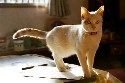 98年の秋の彼岸に人里離れた共同墓地に捨てられていた痩せた子猫。