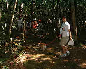 キャンプ場のオーナーがお勧めなのが、青木ヶ原樹海のハイキング。 コースが良く整備され、アップダウンが少なく、涼しいのでワンコと同伴で歩くには最適です。 途中で自殺防止の看板があるのにはゾッとしましたが、約1時間の散歩を楽しみました。 |