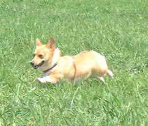 キャンプ場の管理人さんは、コーギーのオーナーでとても親切でした。帰り際には車で近くの牧草地まで案内してくれ、そこでエルザをノーリードで思い切り遊ばせる事ができました。牧畜犬の血が騒いだのか嬉しそうに走るエルザが印象的です。 |