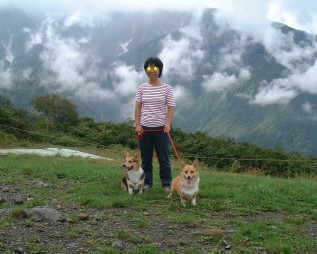 五竜とおみスキー場をゴンドラであがり、少し歩くとちょっとだけアルペンの世界。 エルザは山道が大好きでリードを離せばぐいぐいと坂を登って行き、早く来いよとばかりにこちらを振り向きます。 リフトの終点まで登ったら丁度雲が途切れ、八方尾根が綺麗に見えました。 |