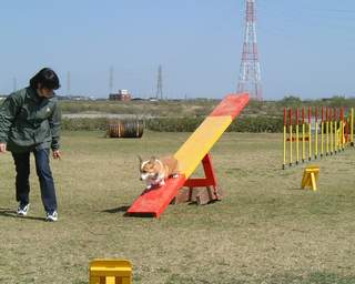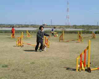 愛想の良さと早食い競争以外に取り柄の無いエルザにアジを体験させてみました。エルザ母に引きずられながら何とかクリア。アジ犬になるまでの道は険しく遠い。がんばろうねエルザ。(無理かな〜) |
