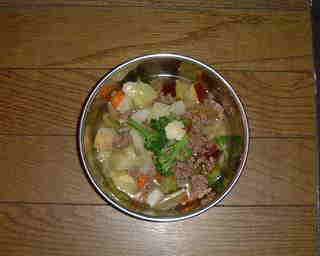 エルザにも美味しい食事を味あわせてあげようと、クッチェッタで手作りのフードを用意してもらいました。肉と野菜たっぷりでとても豪華。 味わって食べてくれ〜と思っても、あっという間に平らげてしまったのは言うまでもありません。 |