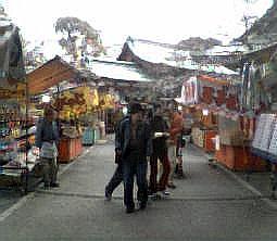 街路を埋めし踊りは昨夜に終われど、浅間神社に祭り未だ果てず、参道・境内に屋台並びたり(右写真)。桜、三分ばかり。境内の、かつて見世物小屋を見たりし辺り、お化け屋敷出る。口上喧し。