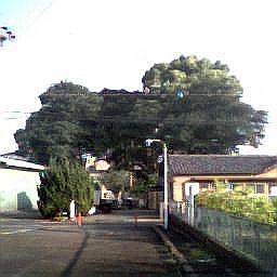 夕方、奥サン、一成と散歩。再び郷倉に赴く。南を見れば、リンク西奈傍らの楠の大樹、西日を浴びて見事なり(左写真)。長尾河畔に出づれば、利倉神社の楠木、枝をすかれた如し。