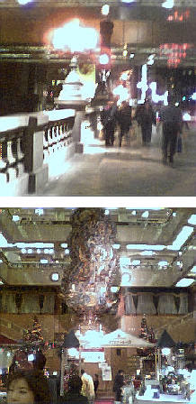 夜、船田氏と自由が丘。駅近くの初めての店。(左写真、上日本橋、下三越デパート一階の弁天像)