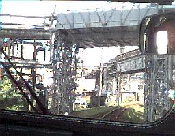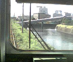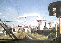 岳南鉄道は、吉原から東へ、岳南江尾 まで、十駅の小鉄道である。「吉原」は 東海道本線吉原駅に隣接し、跨線橋で繋 がっている。 吉原を出ると暫く製紙工場の間を走り やがて郊外住宅地の風景の中へと進む。 その路線は、鉄道模型のマニアなら、 レイアウトに再現したくなる風情である 吉原駅を出て直ぐ、右手に 水路が見えてくる。食べられ るかどうかは分からないが、 魚を釣る人の姿もある(上) 岳南富士岡の駅に憩うD型電気機関車 に牽引された列車(上・右)。岳南鉄道 では、D型電機を多く見かける。 吉原付近の沿線風景。左中、左下。住宅地 にも、どことなく工業地帯の雰囲気がある。 両側に工場が迫り、複雑な配管の下を潜る (上)。