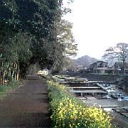 ![]() A遊歩道南端の橋より。上流の利倉橋までの両岸1.5qが車両通行止めの遊歩道となっている。利倉橋以南は、普段は水が涸れている。(120414撮影) |