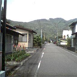 大井川鉄道駿河徳山駅より、川根高校に 向かう道。右手、白い建物が、川根高校。 (120712撮影)