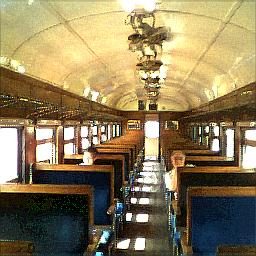 左列車の最後尾の客車内部。 客車はオハ35。天井照明は蛍光灯であ る。 (120712撮影)