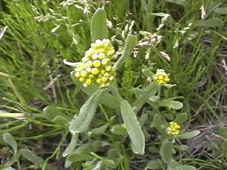 茎と共に白い綿毛が覆い、ふわふわする感じで小さな黄色の花を多数付ける。