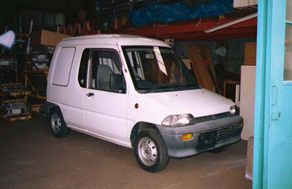 | しばらくして、白いトッポとご対面。やっと、土俵に上がることが出来たと言った心境でした。 まあ、商用で使われていた車で、決して程度が良い車ではない物の、予算と、改造がうまくいくかどうかも解らない事を考えれば『上等』。こうしてEVトッポへの第一歩を踏み出したのでした。 |