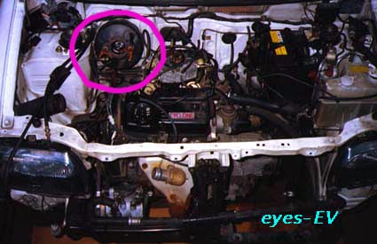 | いよいよ始まってしまった。正直言って不安だらけ。なぜならメンバー三名の中に車をいじったことのある者は一人もいない。電気だって素人である。 私が車のことでやったことがあるのは『ウオッシャー液追加・スキーシーズン前後のタイヤ交換・ガソリンタンクの水抜き剤注入』くらい。EV手作り教室には参加したものの、講義内容はEVにまつわる技術と大まかな作業実習。具体的なばらし方はむしろ一般的な車両整備の部類か。 うかつだった・・・エンジンをはずすことは確かだから、とりあえず車体をウマに乗せ、エンジンオイルを抜いてしまおう、と言うことで作業にかかる。 と、ここで早くも問題が発生。いままで車をウマに乗せたことがない。どうやって乗せるのだろう。付属ジャッキだけでは無理だろうと言うことで油圧タイプは買っておいたものの、どこを持ちあげれば良いのか解らない。その上、めいっぱいあげても、ウマの最上段まで上がりそうもない・・・ 強攻策。メンバー二人は大男の部類。強引に行ってしまえと言うことで、二人がかりで持ち上げたところへ、私がウマを差し込む。 だいじょ〜ぶ? だいじょ〜ぶです。 こうして無事にオイル抜きが完了したのでした。 しかし、せっかく意気込んで集まったのにこれだけでは物足りない、と他の部品も取ることになった。 何が取れる?何が取れる? しかしこれが大間違い・・・ |