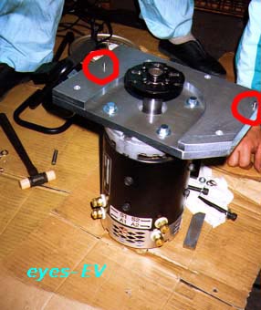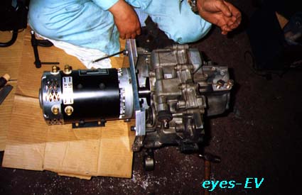 エンジン取り付けのためにあいていた穴を使って、ミッションに固定。