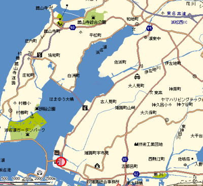 東名浜松西I.Cを降りてすぐに右折。 料金所を過ぎて100mほどでこの交差点ですので やや右寄りで料金所を通過した方が無難です。 ![]() |