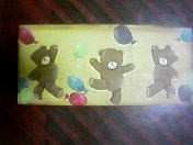 | クマのプレート。 破材を買ってきて書きました。 キーフックにして友達にあげる つもりだったのに、何故かまだ 手元にあるのは・・・ 全体的にクマちゃんがおデブ(^^; |