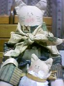 | 製作キットを買ってきて作った ネコちゃん。 ボディの紅茶染めとかすごい 楽しかった♪ |