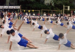 入場 さあ行くぞ! 場面1 「現代の生活」 ダイナリズムを取り入れて 場面2 「木」−2人組 場面3「星」−3人組 場面4「山」−5人組→10人組 場面5 「川・海」 直線の波→円の波 場面6 「富士山」 4段の塔など