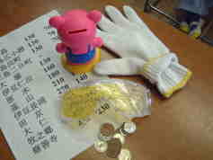 2重の軍手 貯金箱 鉄道の運賃表 小銭 財布