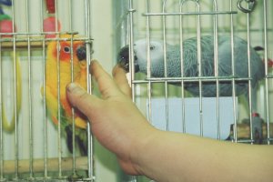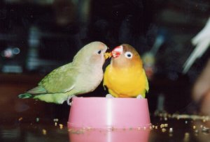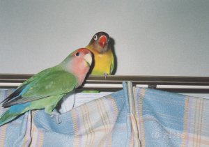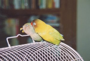 ようたとあんずはペットショップにいた時から かごがお隣どうしだったので、今でもとても 良いコンビです。 |