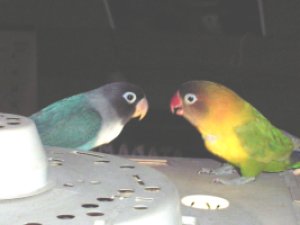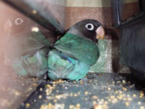 オカメ’Sとちゅるる&ももの かごの間に入り込んでます。 時々、落ちている餌を拾い食いしてます。 |
