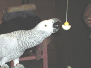 電気のコードの先に 卵に入ったひよこが…。 ようたがパクッとしようとしています。 ようたってちょっと恐竜っぽい? |
