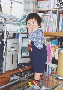 親に前髪を切られてしまいました。(>_<) ちょっと切りすぎ?! (しかも曲がってる〜。) |