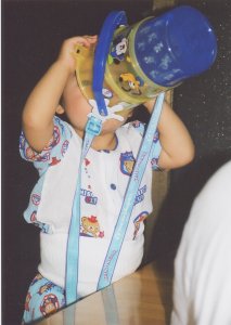 自分の声が響くのが楽しいらしく、 一時ず〜っとこうやって遊んでいました。 |