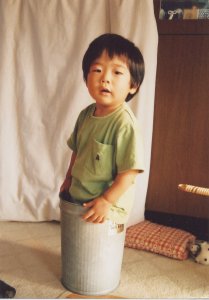 一時、ゴミ箱の中に入って 遊びたがった事があって (このゴミ箱はおもちゃ入れに 使っていました。) 写真を撮ってみましたが、 なんか変ですね〜。(^_^;) |