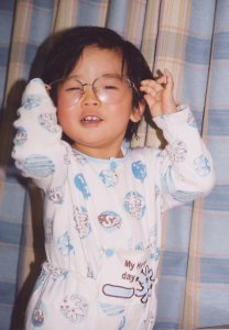 | パパがお風呂に入ってる隙に 一足早く上がったぴよぴよが パパのメガネで遊んでいます。 なかなかうまくかけられなくて 苦労してましたが ほんの一瞬だけ うまくかけられました。(^_^) |