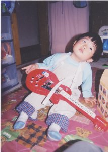 自分からギターを首にかけたから 弾くのかなぁと思ったら、 後ろに体を傾けて一休み。 「はぁ〜。」って感じですね。(^_^;) |