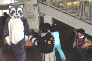 同じく、保育祭りのワンシーンですが アライグマ?が会場をうろうろしていて 最初は怖がっていましたが 最後には、なれて、 アライグマ?のしっぽをつかんで ニコニコしていました。 (他に怪獣等もいましたが 怪獣は人の顔が出ているタイプで 怖い、怖い、といい、最後まで 近づきませんでした。) |