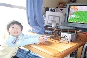 テレビゲームやってます。 たま〜にしかやらせませんが だんだんうまくなってきてます。(^^;) |