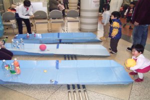 手作りのボーリングコーナーです。 ぴよぴよはけっこう力があるので ストライクを連発していました。 「今度いっしょにボーリングやろうね。」と 家でもたまに言われるので (テレビゲームでボーリングの ゲームがあるので。) もう少し大きくなったら 一緒にボーリングやりに 行こうと思ってます。 |