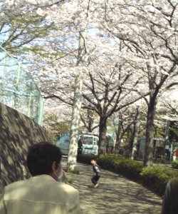 リス園隣の道路は、 桜がちょうど見頃でした。 こちらを振り返る小さな人物が ぴよぴよです。 |