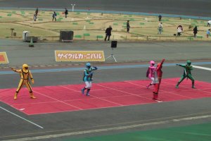近くで、マジレンジャーショーが あったので、見に行ってきました。 去年、デカレンジャーにサインを もらったときは、 機嫌の悪かったぴよぴよも 少し大きくなった今年は 終始ニコニコでした。(*^.^*) |