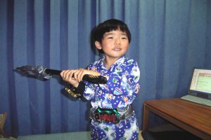 仮面ライダー轟鬼の武器を 手に入れたぴよぴよ。 さっそく装着、へ〜んし〜ん!!! |